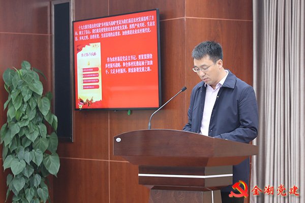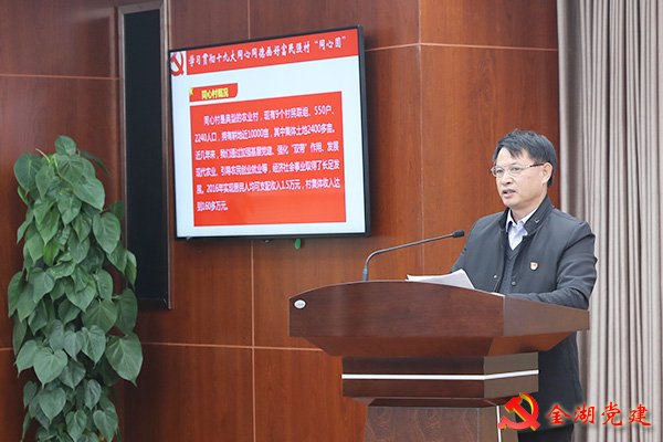 “牢记‘绿水青山就是金山银山’,打造生态湖区……”前锋镇白马湖村党总支书记蒋贵清结合白马湖村实际,阐述了对习总书记这一论断的见解,表示要让党员在合作社里发光,要让社员在合作社里发财,向我们展示了提前将白马湖村建设成为全面小康村、国家级最美渔村的信心与决心。